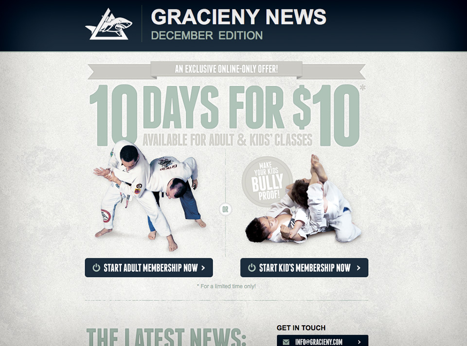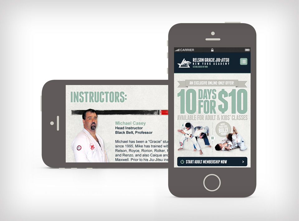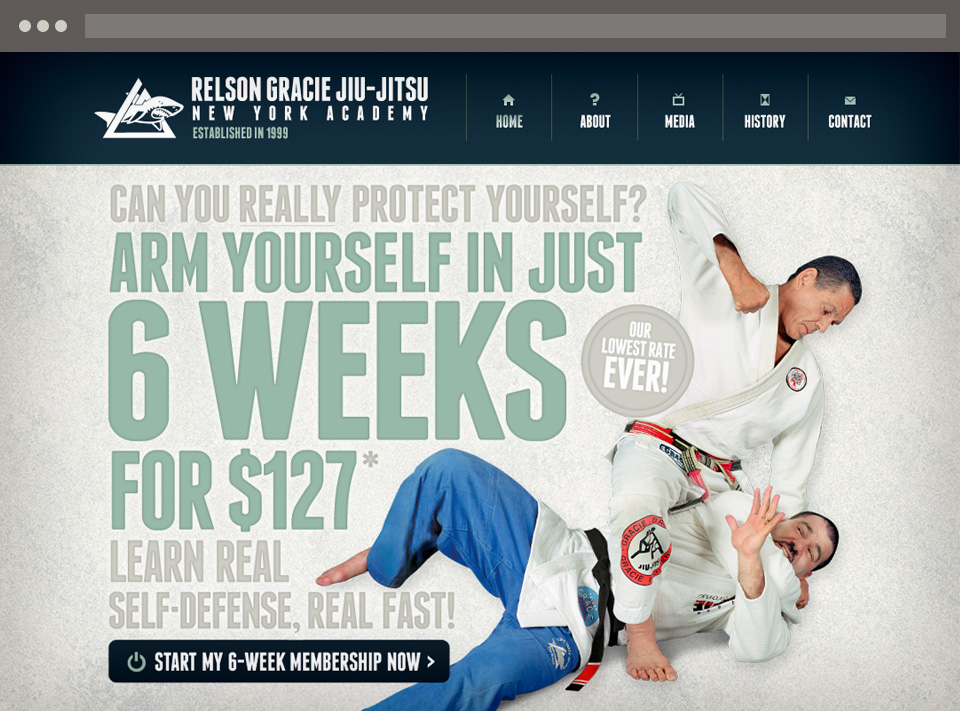 Gracie Jiu-jitsu is the premiere school of self-defense in the country. The head instructor of the NY Association wanted a tribute gi (uniform) designed for the Grandmaster Relson Gracie. Relson loves simplicity. Keeping that in mind, I designed 2 simple but elegant logos, as well as, a patch and label featuring Relson and his signature. The academy also needed a new functional website that would help convert potential students to join the school directly from the site. They also needed a way to capture email addresses so that they could build up their mailing list to offer students and potential students, great deals with their monthly newsletter emails. Additionally, I needed to create an identity system for their new program series, Gracie CORE, which specializes on techniques that are required in the Gracie Jiu-jitsu curriculum.